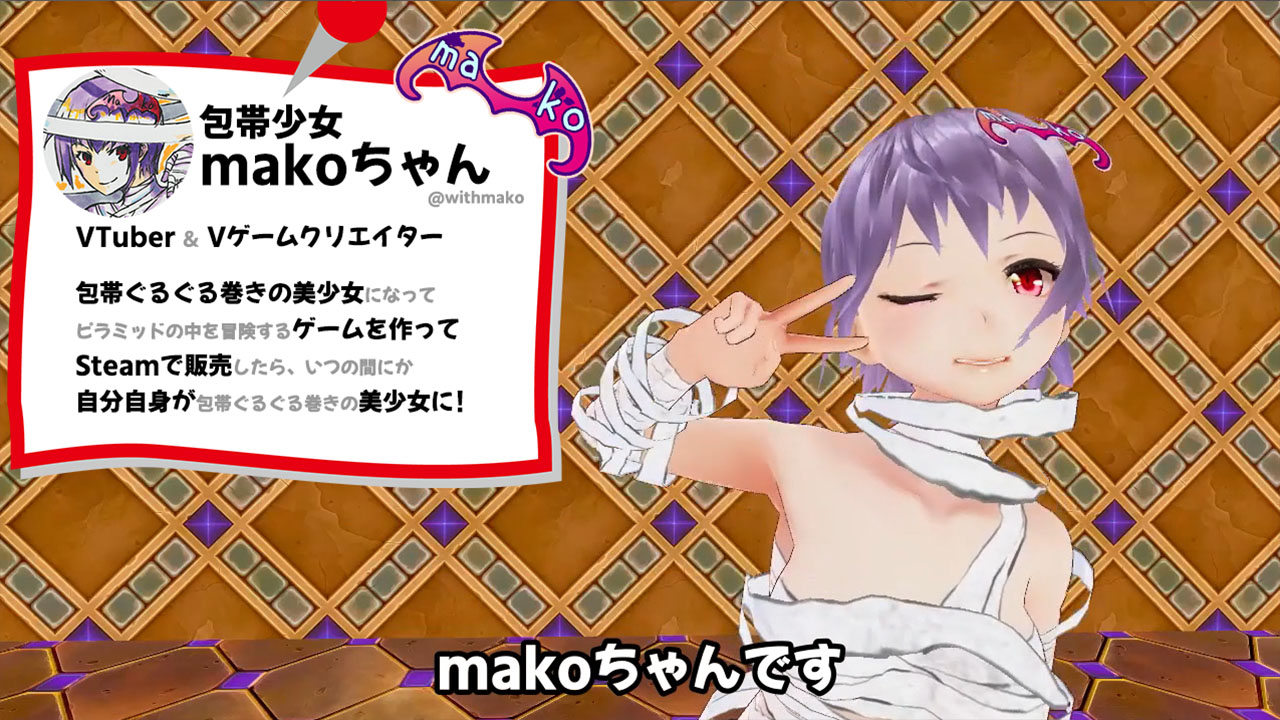 『VR包帯少女』の制作者である『包帯少女makoちゃん』は、ゲーム制作に特化したバーチャルYouTuberです。
